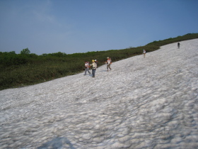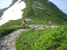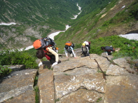 3日目 下山日、今日も快晴、1日目からテールが剥がれそうだったI女史の靴も何とかもった。