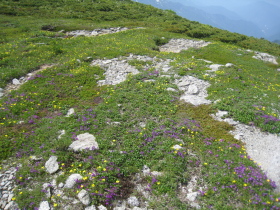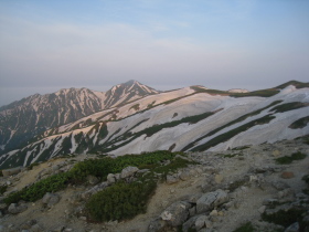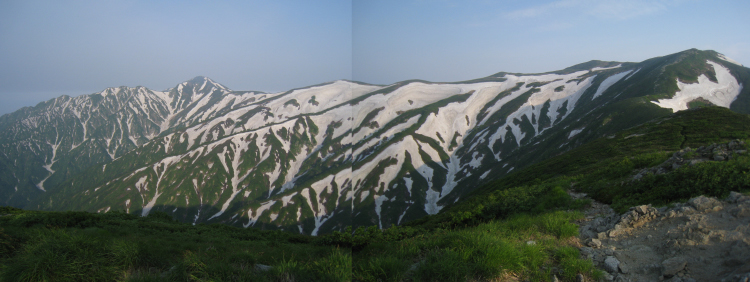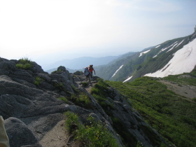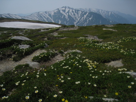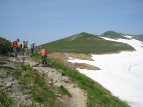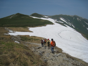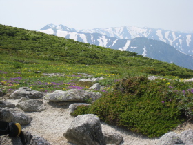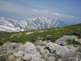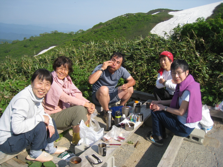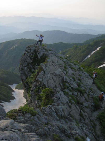梅雨時に奇跡的とも言える3日間の快晴で素晴らしい山行になった。この時期ならではなのだろう、花が圧倒的に多く、ヒメサユリ、シラネアオイ、ミヤマハンショウヅルがそこかしこに次々に現れて咲き誇っていた。久しぶりにハクサンコザクラも堪能した。もくもくの仲間も楽しく、予想外に収穫のある良い山旅だった。
