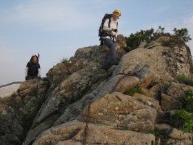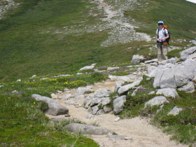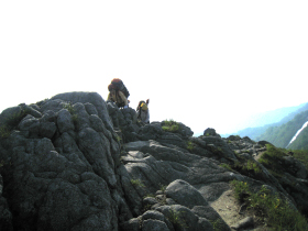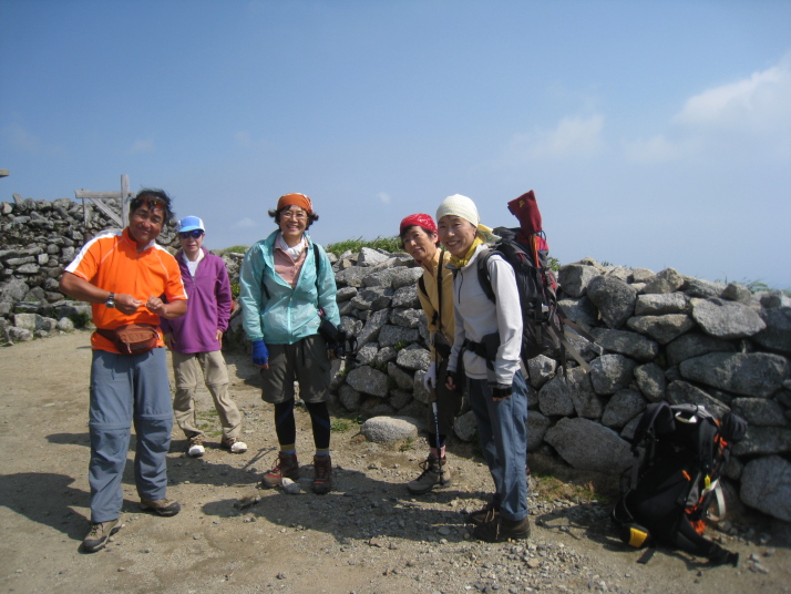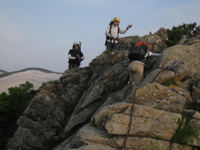 2日目 この日も快晴、切合小屋から本日宿泊先の飯豊本山小屋へ、M子女史と私は大日岳へ、残りは御西岳あたりのお花畑をのんびり散策、水場を見つけて大喜び。通り過ぎる他の登山者は一様に水が無くて往生していたようだ。