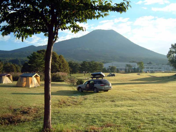 岩手山を登山後、岩木山の南麓にある岩木スポーツセンターに着いたのはもう日没間近だった。大きな体育館と宿泊施設がありラグビー場も離れたところに見える。とても広い敷地で宿泊施設には大勢の学生が合宿をしていたが、宿泊客は他にはそれほど居そうにない。キャンプを申し込むと税込み¥525で風呂はご自由にどうぞ、よろしかったら張ってあるテントもお使いください、と優しく説明された。感激である。何より暗い中でテントを張らなくてすむ。テントサイトはやたら広い芝生の中で、一組だけ遠くにいるだけでほとんど独り占めである。見上げると岩木山の大きなシルエットが月明かりに浮かんでいる。風呂に入りに行くと他に誰もいないし、温泉である。シャンプーやら石鹸がなかったが、この料金ではクレームなどつけるべくもない。借りたテントも広くてゆったりできた。
