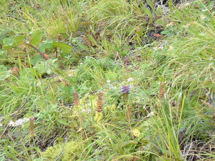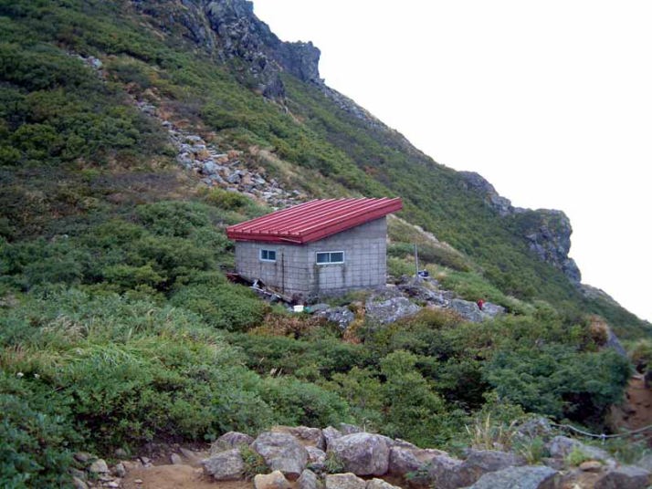 八合目の駐車場に車を停めて準備していると、意外にも登山客が多い。この駐車場からは白神山地や秋田駒が見える。見上げれば山頂が雲間に見え隠れしている。晴れてはいるが、今日も山頂で展望を楽しむことは難しそうだ。リフトは9時からの営業だそうで、もちろん初めから使う気はなかったが、あとで考えてみるとその時間に合わせてきている人が大勢居たようだ。出発する頃にはもう駐車スペースは数えるほどしかなかった。