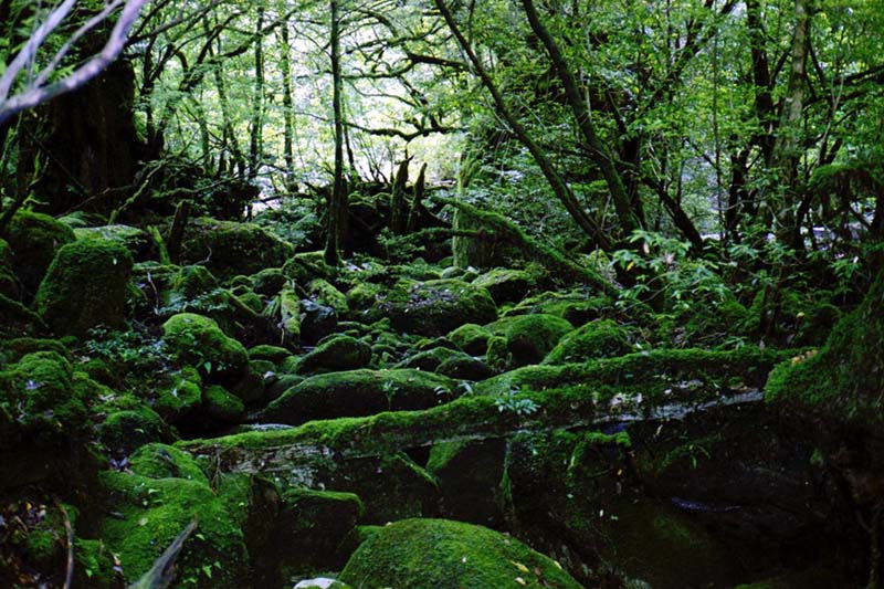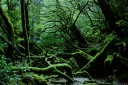 空港の建物を出たところにザックを置いて、ガスボンベを売っているショップまで歩き始める。駐車場から近道の階段を登って環状道へ出たところでレンタカー屋さんに声をかけられる。話を聞きながら、登山口までのタクシー代と帰路の林道歩きや不便さなどを考えればいい選択かなと思い借りることにした。宿も安いところを紹介してもらって、レンタカーに乗り、さっそくガスボンベを買いに行く。次に「でたらめ」という名の民宿へ行きチェックインする。といっても夫婦だけでやっている素泊まりの民宿で、宿泊料が格安なことが自慢で宿の名をつけたらしい。挨拶を済ましてすぐに白谷雲水峡へ向かう。レンタカー屋で是非行けと薦められた場所で、2時間ほど歩いたが確かにいいところだった。弥生杉などの大木もすごいが、苔むした原生林は世界遺産に登録されたのもうなずける素晴らしいものだった。この原生林を見るだけでも屋久島に来た甲斐があると思った。