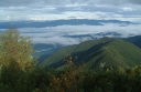 尾根に取り付くとまもなく急登が続く。寝不足でヒーコラすることを覚悟していたが割りと調子が良く、高度計では20分で120mのペースだ。中2本立てて、思ったより早く鳥倉口との分岐点を過ぎる。三伏峠の小屋へは私の予定より30分以上早く着いた。小屋の1階はもう仕舞支度で畳が上げてあり、毛布などが干されている。寝場所は2階で、指定された番号のあたりにすでに7〜8人寝そべっていた。寝具はシュラフではなくふとんで、料金もとられなかった。一人のスペースは狭いが、さすがにこの時期では泊り客も少ないので間隔をあけて割り当てている。結局20人ほどが泊まったようだ。