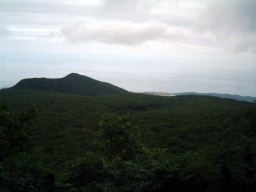 未明にキャンプ場を出て、地の涯・岩尾別温泉に向かう。ホテルの前の一般駐車場は満車に近く、もうホテルから三々五々登山者が出てきている。ツアー集団もいるようだ。5年前に引き返した道を登っていく。オホーツク展望では知床五湖の一部も見え、爽快だが、山の上は厚い雲で覆われていて回復しそうもない。 |