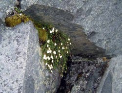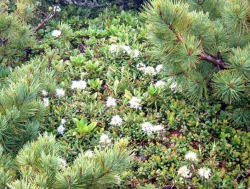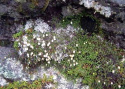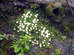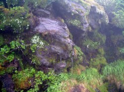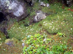 ![]() 山頂途次の岩清水 イワウメの群落 |
