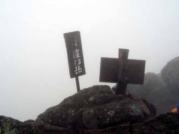 頂上までは風の陰になっていたが山頂はものすごい風であった。 |