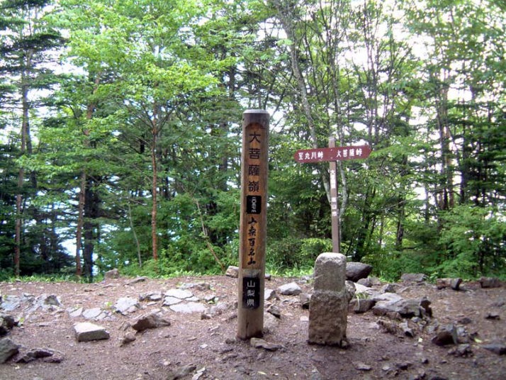 唐松尾根の頭で軽い昼食にする。ここで休んでいる登山者は5〜6組20人ほど。ここを出ると10分も経たずに大菩薩嶺に着いた。深田百名山97個目ということになる。気になるから百名山は早く終わらせて、今秋から思いつく山をゆったりと登りたいものだと思う。