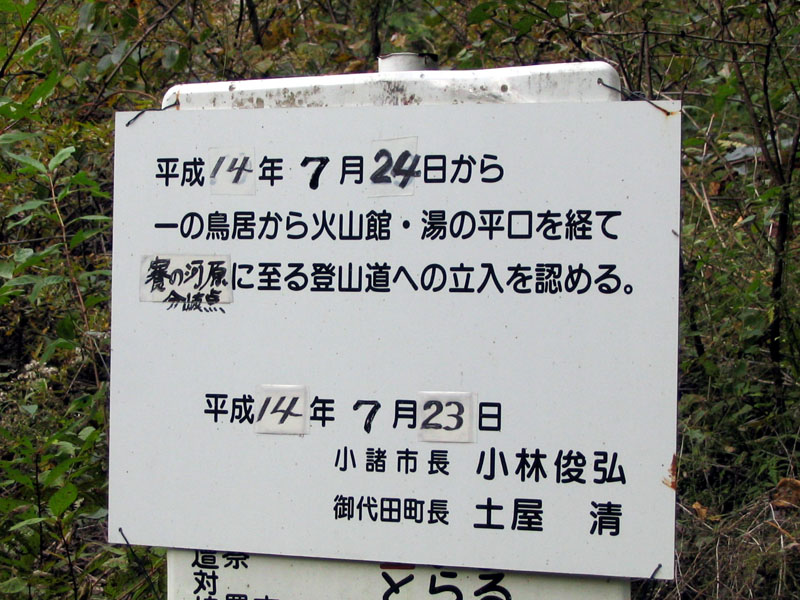 ![]() 入山禁止解除の案内板 でも、山頂へは立入禁止だ |
