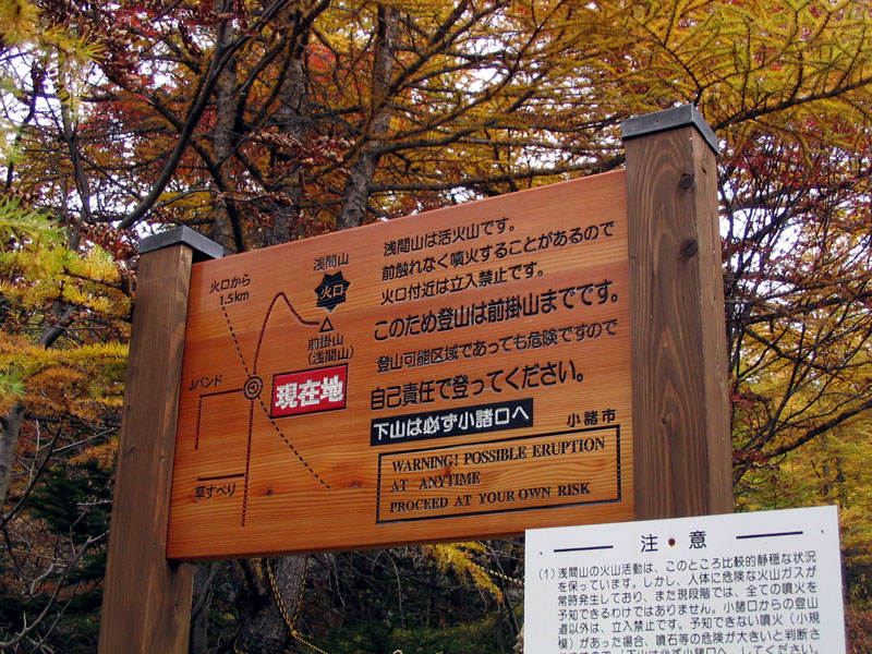 ![]() 噴火注意の案内板 |