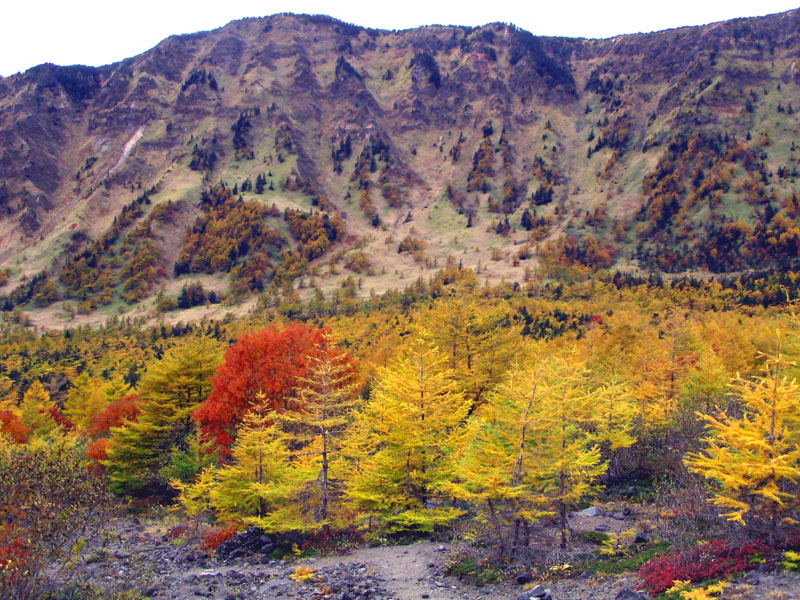 ![]() 中腹も紅葉が始まっている |