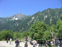 ●上高地では「ほんまかいな」のU嬢、H嬢達にばったり会い、聞けば槍から南岳を廻るということで、槍と南の間で会おう、という話で盛り上がった。今日は殺生ヒュッテまで上がると言うので、こちらも負けじと南岳まで行くことにした。これが途中で大きく後悔する元だったが、結果オーライだったので彼女らに感謝だ。