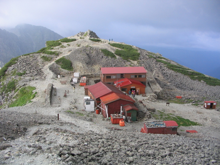●ヒュッテ西岳に着いて宿泊を願うと、この時間なら大天井へ行くほうがいいと言って受け付けない。赤沢山へピストンすると言うと、宿泊は帰ってから考えればいいと、往復1時間ほどだから行って来なさいと促される。今日は団体さんが入っているので宿泊客がかなりいっぱいの様子だった。