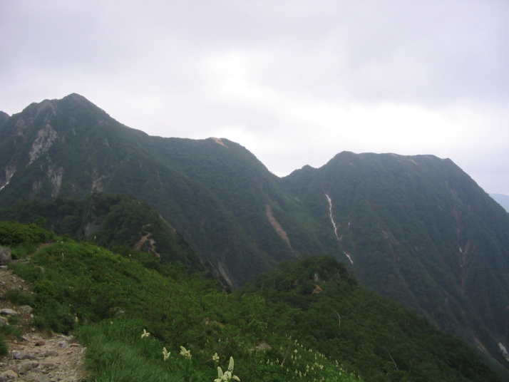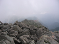 ●昨日攣った足が心配だったが、歩いているうちに何とかなりそうだったので一安心。天気が悪い中、「ほんまかいな」嬢達にどこで会うのか楽しみだったが、大喰岳を過ぎる頃にはこちらに向かうのを諦めたと確信した。