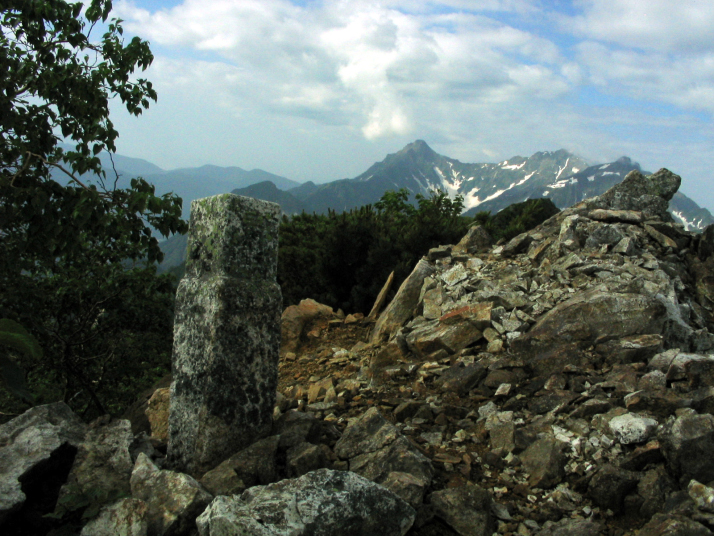 ●西岳から稜線伝いに赤岩岳へ行けないかと探ったが、かなりの藪がかかっていたので別に登り口があると思い、その入口を捜しながら先へ進む。ところがいくつか峰があってどの頂が赤岩岳なのかはっきりしない。地図を見ながら巻き道を行ったり来たり、行き交う人の視線が気になる。何度か確かめてあの峰に違いないと確信してから、どうしても登り口が探せない。思い余って登れそうながけを上がり始めたが、ガレているから木の枝につかまりながら何とか登り、稜線にあと数メートルでハイマツのすごい藪を力任せに這い登る。大きな岩があってその向こうだと思って進むと、いきなり切り立った岸壁で進みようがない。万事休す!と思ったがタバコを吸って落ち着き、岩の陰を下って大きく廻り込むと、果たして三角点が見つかった。前日の赤沢山もひどかったが、こちらは馬鹿げた山頂だ。帰り口を捜すのにまた行ったり来たりしてようやく元の正式な山道に降りることができた。後で先輩に聞いたら西岳から稜線伝いに行くのがルートらしい。でも降り口はどこだったんだろう?