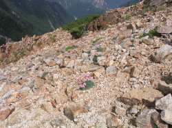 かなり時間を食ったし体力も使ったので大天井までがきつかった。しかし、大天井ヒュッテからの登りはコマクサの大群落があって夢心地であった。大天井の山頂は割愛して先に進むと、なだらかで広い斜面が続き、とても歩きやすくて気分がよい道のりだった。しかし、東大天井岳も横通岳もルートを外れなければならない。一苦労であったが、ようやく今日の宿の常念小屋に着くと、ビールを飲みながら持参の小説を読んで過ごすひとときは格別であった。