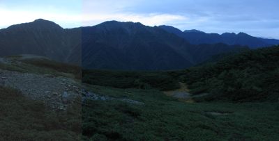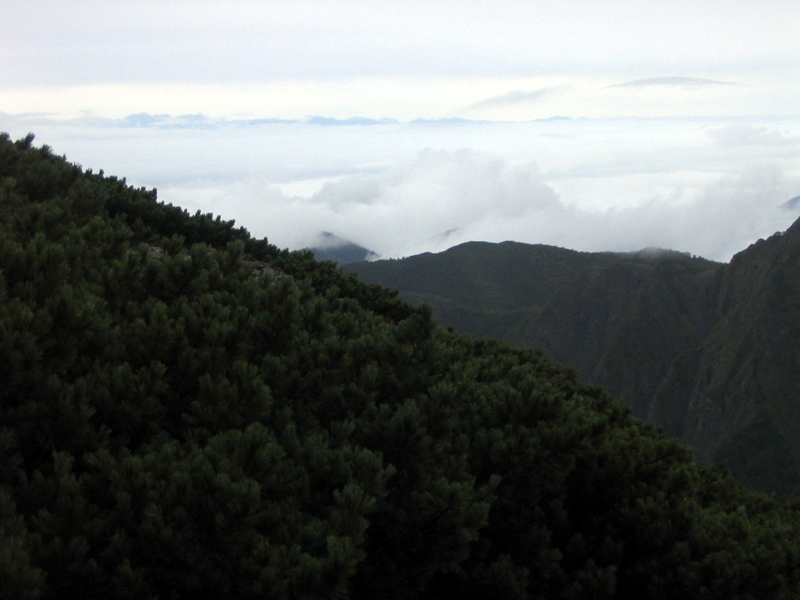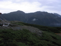 5時前に起き出して外を見てみるが、昨晩のあの雄大な景色がうそのように真っ白、雨交じりの強風である。気を入れなおして出発。昨日の5割り増しのひどさだ。雷鳥が何組も出てきて、なかなか道を譲らないので何度も立ち休憩モード。黙々と道を進むが雨はひどくなるだけ。結局あの日暮れまでの夕刻のひと時だけが宝となった。