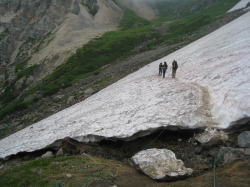 雪渓歩きの始まり |
