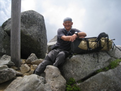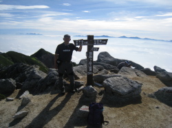 木曽殿山荘には水がなく、8分下った義仲力水へ水汲みにいったが、水の出が極端に細く、1リットル汲むのに長い時間がかかった。おまけにひどい薮蚊!小屋で買えば良かった。空木岳から仙涯嶺までのピストンは、やはり復路でへばった。カーボショッツが効いた!空木の下りもヘロヘロで、母娘のふたりにも抜かれた。下りで抜かれたのはあまり覚えがなく(しかも年上の女性に)、ショック!!これもカーボショッツで乗り切った。だから、やはり池山小屋で泊った。生まれ変わった、きれいな広い小屋にひとりきり、アズマシかった。おかげで翌朝の高速道路はスイスイ。 |