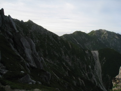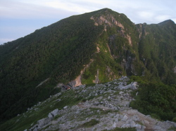 東川岳、空木を登る途中、 寝坊して夜はすっかり明けてしまった |