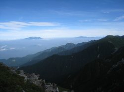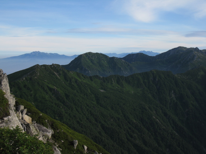 三の沢岳の向こうに乗鞍と槍穂高 |