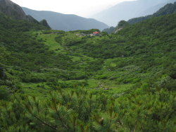 下山の稜線から空木平避難小屋 あそこには水がいっぱいあったのに |