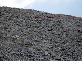 コマクサの大群落にびっくり 高山植物はとても豊富だ |