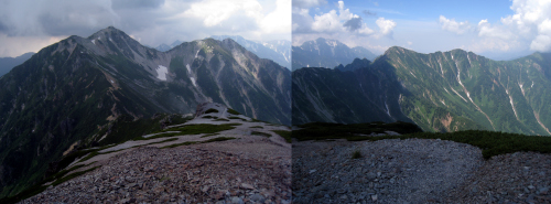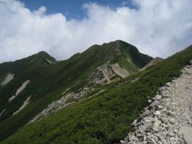蓮華岳に向かう途中、反対側の針ノ木岳 |