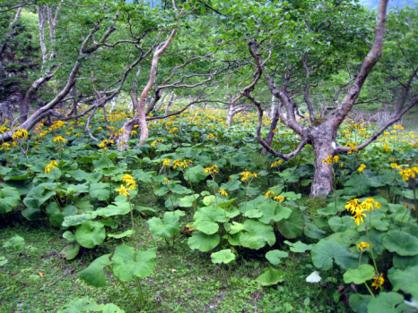仙塩尾根にあるマルバダケブキの大群落、圧倒された |