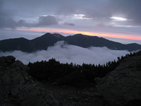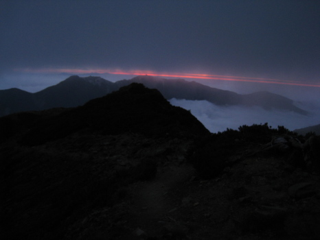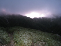 小太郎分岐の少し手間へでご来光を向かえ、しばし佇む |