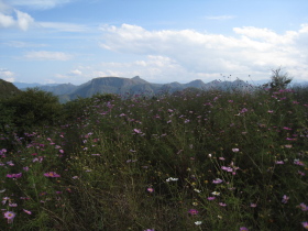 浅間山方面 八風山の左手に今日のキャンプ場が見える |