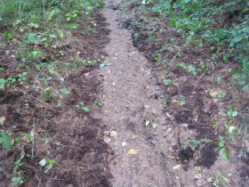 道の両側にずっと掘り返した跡、猪? |