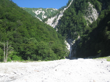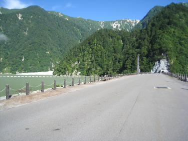 晴嵐荘の方の好意で借りた裏の道具小屋で昼食、そこにいた青年は北鎌尾根に向かう予定が増水で進めず迷っていたが、私が大町まで車同乗を勧めたら同行を望んだので、高瀬ダムへまでの長い林道をひとりで歩かないで済んだ。ダム手前の長いトンネルは、ほぼまっすぐなのに先に明かりが見えないほどだった。