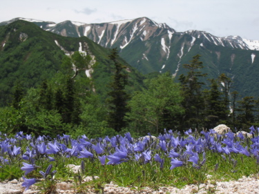 烏帽子小屋前のイワギキョウ、満開 |