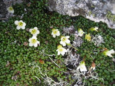 ミネズオウ、これは白花だが 赤花か白花か判別しにくいピンクがかったのもあった |