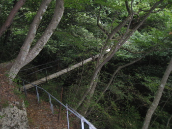 苦手な吊橋、揺れて手すりが低くて怖かった |