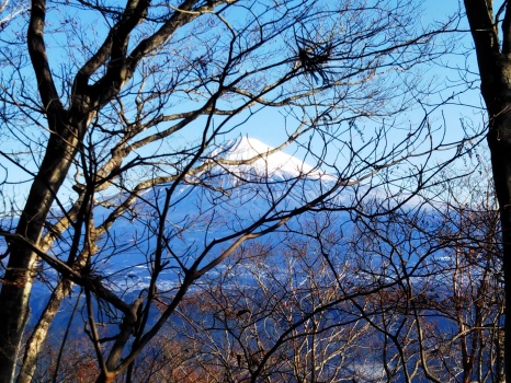 滝戸山は過去2回挑戦し、いずれも林道が通行止めで敗退した。調査不足である。今回は規制がないことを確かめていたが、一昨夜の降雪でどうかなと思ったが、影響はなかった。鶯宿峠の駐車スペースに着いたら、先行者らしき人が帰るところだった。私が滝戸山の登ることがわかったのだろう、運転席から挨拶を送ってきた。滝戸山へは薄く冠雪したほぼなだらかな登山道をしみじみと味わいながら歩いた。40分くらいの長閑なハイキングコースだが、単独行は静かだ。山頂では南アルプスがほぼ全容で迎えてくれた。もう少し樹木がなければ絶景の場所で、富士山も樹間でわずかに見えるだけだ。下りはまだ2時だというのに影が長く伸びて、夕方の趣だ。日が短いのは山登りにはリスクがあるな、と思いながらも、山梨百名山の最後を楽しんだ。