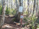 いきなり急登であった。登山道への「いたずら書き」を非難する看板が立ててあり、あとでわかったが、朱色のペイントで木の幹や岩に大きく乱雑な文字で「中高年がんばれ」などと何箇所かに書いてあった。まったく「落書き」以外の何物でもない。書いた本人(達)には解せぬことなのであろうが、要は人間の程度(レベル)の問題なのだと思う。ほかの山でもよくあるのが「ごみを捨てるな」「きれいな山を守ろう」などの看板標識が山道に延々と据えられていて「○○学校」「○○の会」などと明記してあるのをよく見かける。笑止である。ただの売名行為でありそれ自体が「ゴミ」であることがわからないという、程度の悪さを感ずる。学校であれば、そのように指導するのが教育者であろうとは情けなくなる。