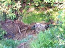 下りも追い越したり追い越されたりする人はほとんどなくて一人旅に近かったが、  保久礼小屋に着くと数組の人が休んでいて賑やかになった。保久礼小屋は古びてはいるがコンクリート製で頑丈そうだ。ここから二口の駐車場へと向かうが、先行者に釣られて車が通れそうな広い道を行きそうになり、気づいて道標を良く見ると脇にある薄暗い森へと続く山道がそうであった。そちらへ向かうのは私一人らしく駐車場へ着くまで誰にも会わなかった。2.5万地図上の林道はさらに延長されていて沢の堰堤工事をしている。堰堤はその下流にもたくさんあり、それほど大きな川でもないが、本当にここまで必要なのだろうか、疑問である。林道をおっちらこっちら歩いて駐車場に着く。