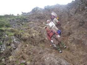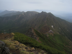 以降 2日目 | 横岳から硫黄岳の険しい稜線 |