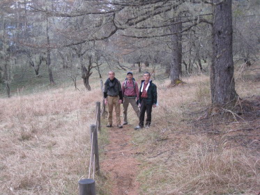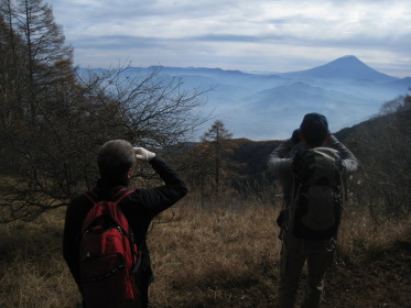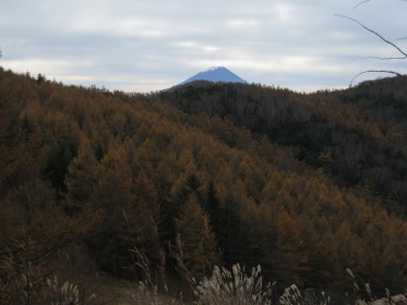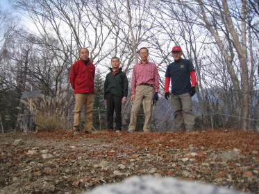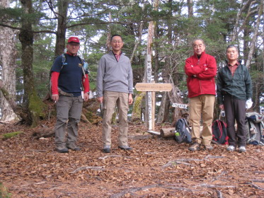 朝7時過ぎ、いつものように豊田駅からコウヘイの車で出発。 中央道はさすがにこの時間は渋滞中。ハラダが来られる時間に合わせているからだが、「次回は大宮まで奥さんに送らせろよ」とのみんなの要請にハラダは微妙な返事。渋滞で1時間は遅れるか、と思っていたら大月あたりから意外とスムースになり、計画よりも少し早く着きそうだ。林道をコウヘイの巧みな(ちょっと怖い)運転で進むと、予定した道が通行止め。通行止めだと思っていた櫛形山への林道に廻り込めるようで、10台くらい駐まっている櫛形山登山口駐車場を引き返すようにして、池の茶屋峠に到着。