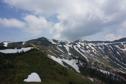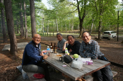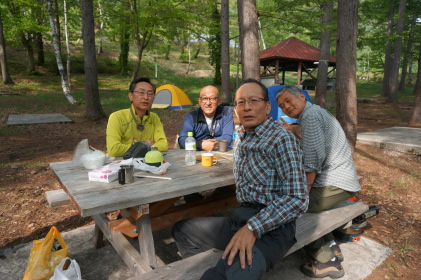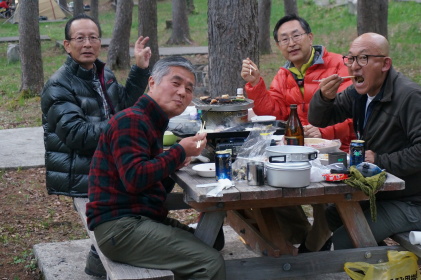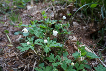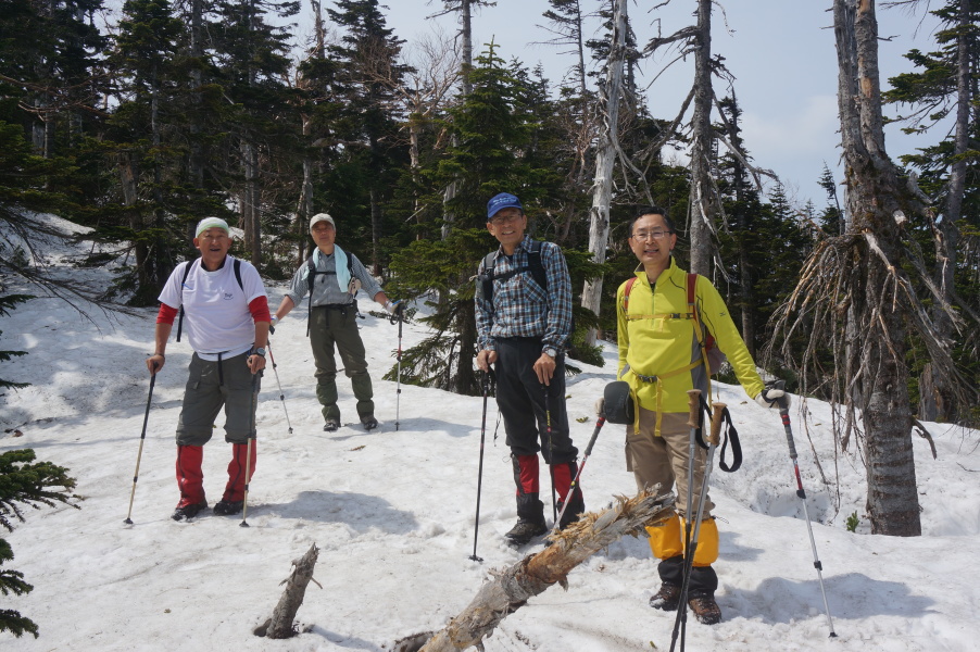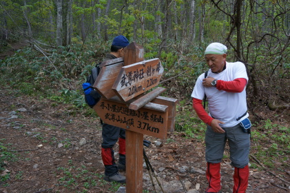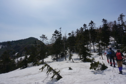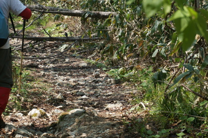 | マミジロのツガイが我々を先導 倒木の上にオス |