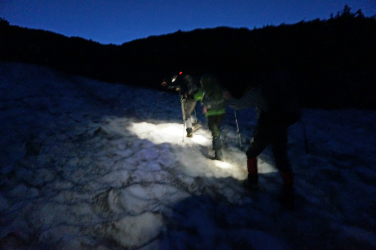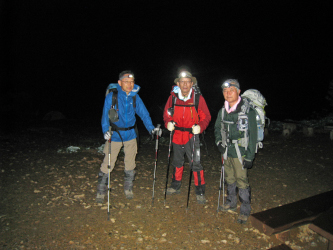 7月23日夕刻、豊田駅からOGの車で出発。今回は店の売り出しがあって参加できないMがいないので、車は4人でゆったり座れてよかった。饒舌な彼がいないと静かだが、ちょっぴり寂しい。平日とあって道の渋滞もなく、予測より早めに着き(運転手のOGは鈍足の前の車に苛立っていたが)コンビニに寄って、白馬村の「五竜ドライブステーション」で、ビールで軽く喉を潤してから5時間ほど仮眠できた。2時間程度しか眠れなかった者もいたそうだが、バテそうなヤツじゃないから大丈夫だろう。