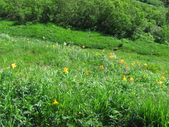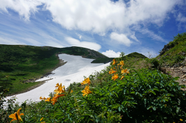 クルマユリ、雪倉岳避難小屋南に群落があった |