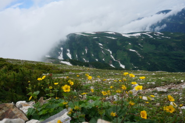 オヤマソバ、イワベンケイ、ヨユバシオガマ、 ウルップソウ、タカネヤハズハハコ、ミヤマクワガタ、 ミヤマアズマギク、ウサギギク、ミヤマダイコンソウ |