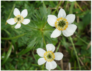 | コイワカガミ | コガネイチゴ | ミヤマオダマキ | シロウマアサツキ | ヨツバシオガマ | ウルップソウ |