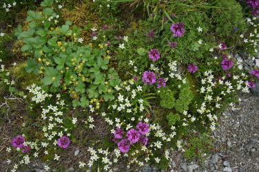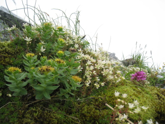 イワベンケイ、ホソバツメクサ、タカネシオガマ |