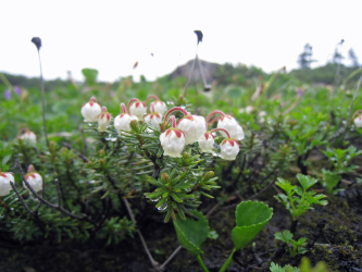 | ミヤマホツツジ | マルバイワシモツケ | ミツバオウレン | キンコウカ | クロトウヒレン | リンネソウ |