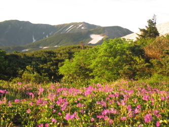 | イワハゼ(アカモノ) | シロウマオウギ | ハクサンイチゲ | ショウジョウバカマ | オタカラコウ | ハクサンオミナエシ |